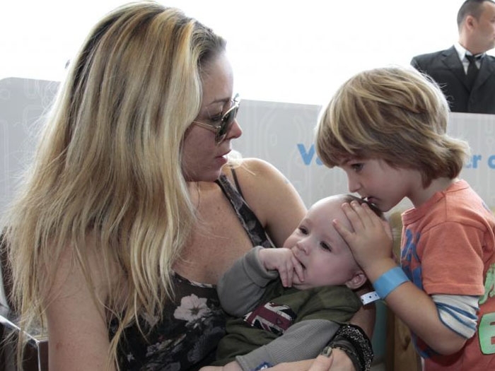 Atriz contou que Noah, de três anos, quer dar banho no irmão, Guy, de quatro meses