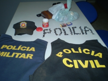 Ao chegar na residência ao fazer busca no interior da residência o 3º SGT PM Moacir encontrou dentro do cesto de lixo um pote de fermento pó Royal, dentro estava 79 cabecinha de pasta base e dentro de uma caixa de fósforo mais 9 cabecinha totalizando em 88 cabecinha de pasta base. Ele foi preso em flagrante e entregue a Delegacia local.
