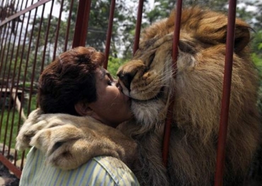 Professora beija leão na boca em abrigo de animais