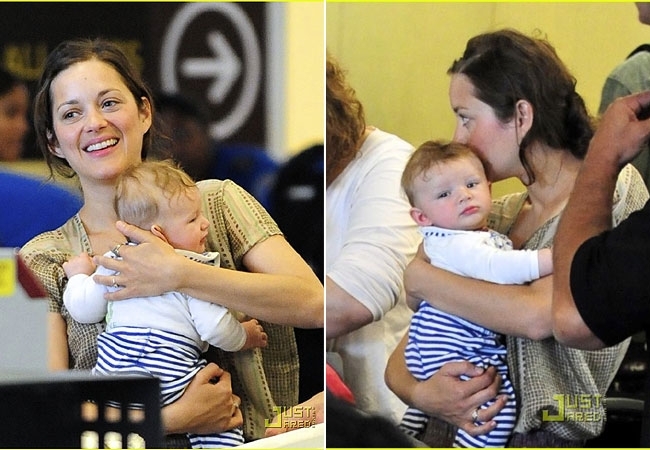 Marion Cotillard foi fotografada pela primeira vez com seu primeiro filho, Marcel, nesta terça-feira (6) no aeroporto LAX, de Los Angeles, nos Estados Unidos. A atriz francesa de 35 segurava o bebê no colo e foi clicada dando beijos no bebê, que sorria. O primeiro filho da atriz nasceu em maio.