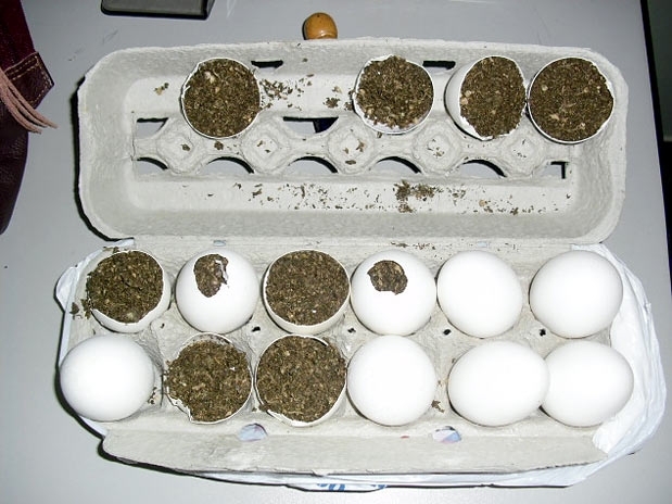 A polícia afirmou que Franciele chegou às 9h e não pretendia visitar o companheiro, apenas entregar a caixa de ovos. Mesmo assim, o carcereiro revistou a encomenda antes de liberar a garota, e estranhou a leveza do produto. Ao quebrar um dos ovos, encontrou a droga oculta. Sete, dos 12 ovos, estavam recheados com 127 g da erva.