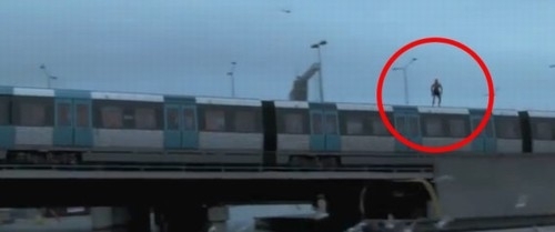 É comum em países pobres e produz até cenas bem bizarras na Índia. Mas surfista ferroviário na Suécia!? Sim, este foi flagrado em Estocolmo, a capital do país nórdico. Quando o trem passava sobre um rio, o surfista se jogou na água...