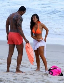Nicole Bahls tem recaída e é flagrada em clima de romance com Léo Santana na praia