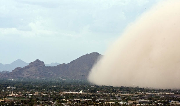 Da rua era possível ver a nuvem de areia se aproximando em Phoenix. Com pouca visibilidade, ficou perigoso dirigir em meio à tempestade. Alguns voos sofreram atrasos no estado devido à nuvem de poeira.