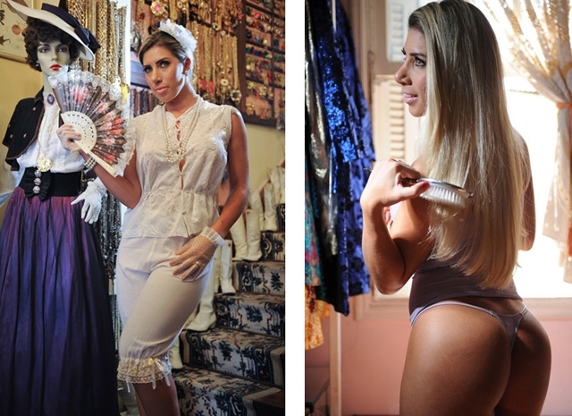 Para mostrar a evolução da peça ao longo dos anos, o G1 convidou a rainha da bateria da Gaviões da Fiel, Tatiane Minerato. Ela foi até o Brechó Minha Avó Tinha, em Perdizes, na Zona Oeste de São Paulo, e experimentou de tudo: desde um modelo da virada do século 19 para o 20, chamado de pantalon, até o famoso fio dental atual.