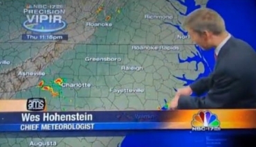 No caso de Wes Hohenstein, homem do tempo do canal americano NBC-17, o erro foi abrir demais a boca na hora errada.