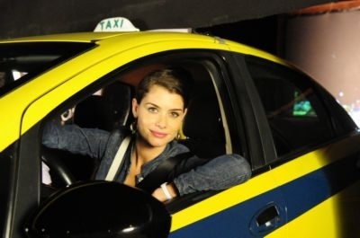 Alinne Moraes grava as primeiras cenas de Lili como taxista. Fotos