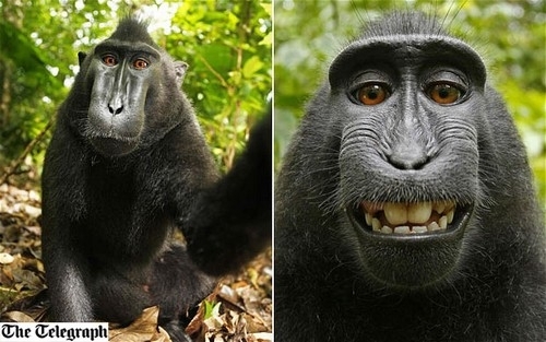 O fotógrafo britânico David Slater teve a câmera roubada por um macaco preto em um parque na ilha de Sulawesi, Indonésia. O hábil símio, que é raro e ameaçado de extinção, aproveitou e tirou umas fotos dele mesmo: