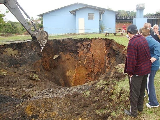 Uma cratera com profundidade estimada em 40 metros surgiu do dia para a noite no pátio de uma escola pública na cidade de Arroio dos Ratos (região metropolitana de Porto Alegre)