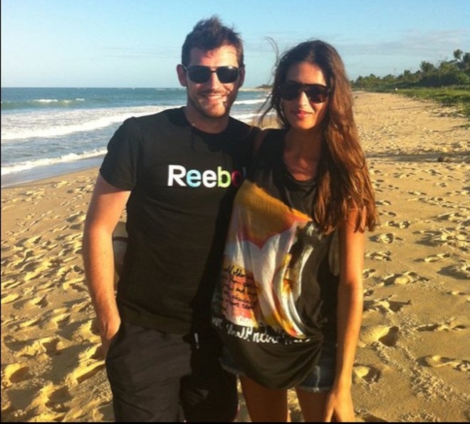 Casillas e Sara Carbonero estão aproveitando as férias. Já passaram por África do Sul, México e agora decidiram curtir o Brasil! O casal está em Trancoso, na Bahia. O goleiro do Real Madrid não perdeu a chance de tirar uma foto ao lado da sua amada e postar no Facebook.