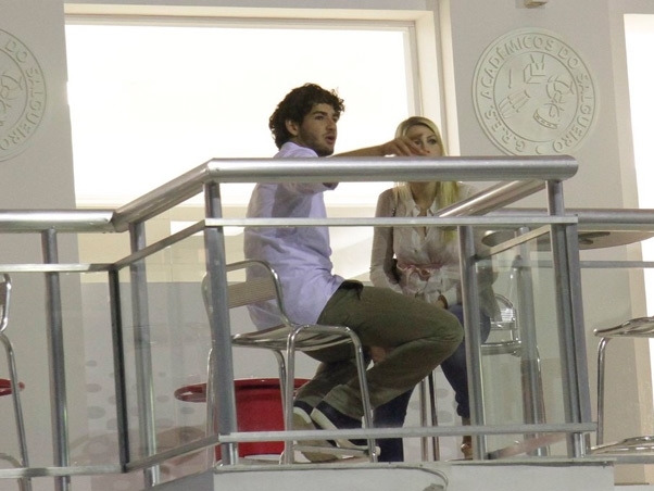 O casal chegou ao local de mãos dadas e sem a escolta de seguranças. Apesar da vontade de Pato, que preferia ficar com o povão, por falta de lugares disponíveis, a assessoria da escola levou o jogador e sua namorada para o camarote da presidência.