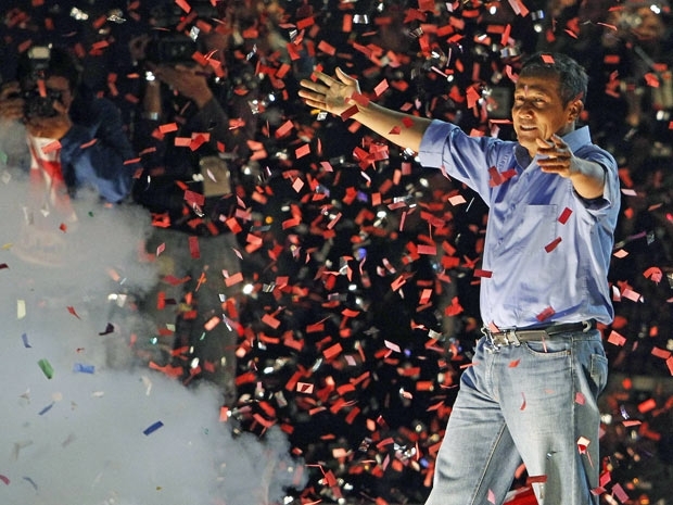 Ollanta Humala e sua mulher, Nadine Heredia, durante comício na noite de domingo (5), em Lima. (Foto: Karel Navarro / AP Photo)