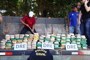 Um carregamento com 180 quilos de drogas foi apreendido pela Delegacia Especializada de Repressão a Entorpecentes (DRE), da Polícia Judiciária Civil de Mato Grosso, na BR-364, região da Agrovila, na Serra de São Vicente. Um total de 165 tabletes, divididos entre pasta-base e cocaína pura, estava escondido no assoalho da carroceria do caminhão coberto com 27 toneladas de sucata, apreendido na madrugada de quinta-feira (02.06). A droga está avaliada em mais de R$ 12 milhões.