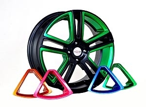 Conhecido nos Estados Unidos, o "insert" está ficando mais popular no Brasil. São peças plásticas pintadas e encaixadas nas hastes das rodas, mudando o visual.