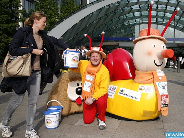 Lloyd Scott, de 49 anos, participou de uma maratona em Londres, na Inglaterra, fantasiado como Brian, o Caracol, do desenho Magic Roundabout.