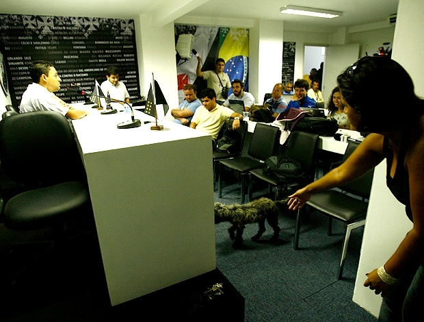 Cachorro invade sala de imprensa do Vasco durante coletiva