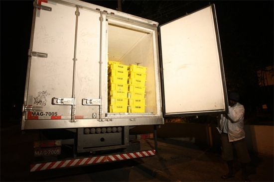 Os policiais encontraram o caminhão frigorífico abandonado com a chave na ignição na avenida Alexandre Mackenzie, por volta das 21h30. Eles localizaram o dono do veículo e descobriram que a carga havia sido roubada na Marginal Tietê, na região do Parque São Domingos, por volta das 19h.