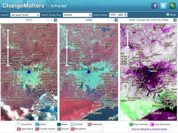 "O serviço expandiu a capacidade de monitorar mudanças na paisagem para usuários de internet de todo mundo. Vai ajudar os usuários a entender as mudanças no mundo", afirmou Jack Dangermond, presidente da Esri, em comunicado. O serviço permite selecionar o período de tempo a ser comparado entre 1975 e 2005 e visualizar as imagens de satélite com destaque para a vegetação saudável no local, em imagens infravermelho ou nas cores naturais da paisagem.