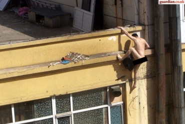 Você está passando pela rua e vê um cara (peladão) descendo um prédio, pelo lado de fora, no melhor estilo homem-aranha. Qual é a primeira coisa que você pensa? O marido chegou...