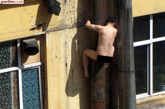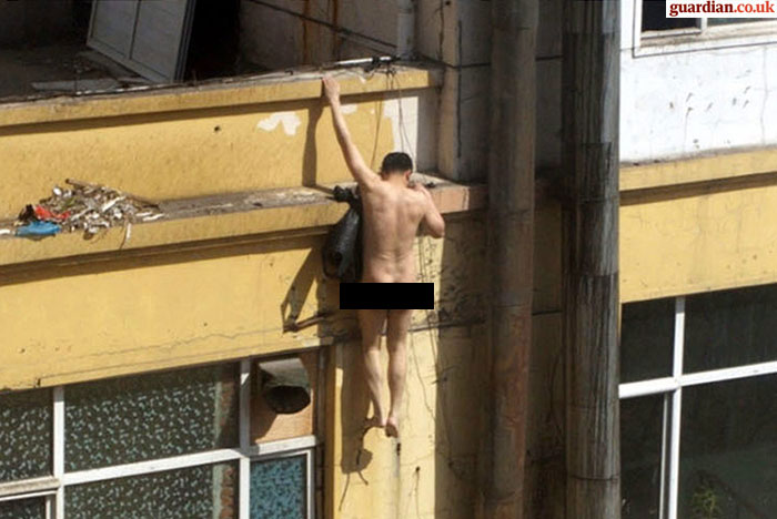 Chinês vai pelo cano e foge pelado de bordel;veja fotos