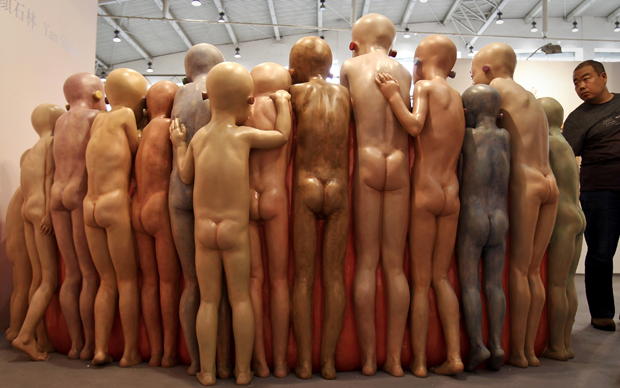 Outro destaque da feira de artes em Pequim é a escultura "What"s up? Empty Sofa" ("O que há? Sofá vazio"). Criado pelo artista Yan Shilin a peça é um sofá cercado de manequins nus na parte traseira.