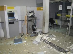 Mesmo com a explosão, assaltantes não conseguiram levar dinheiro. Suspeitos invadiram local e danificaram terminais de banco.