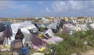 Imigrantes do norte da África sobrecarregaram ilha italiana de Lampedusa.