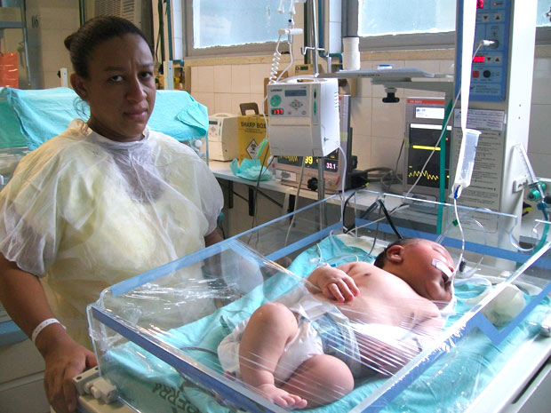 A dona de casa Ana Lúcia da Silva Pereira, 22 anos, deu à luz um bebê de 6,7 quilos, neste sábado (19), em Salvador. O menino, Gustavo Mendes, tem 54 centímetros de comprimento e provocou um susto na mãe, que não esperava por uma criança tão grande. "Ela ficou assustada com o tamanho e com o peso dele", disse o pai, Carlos Eduardo Mendes Correia, 22 anos.