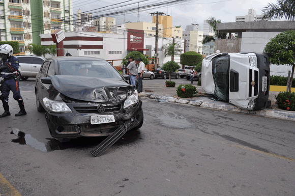 Uma caminhonete S 10 da Secretaria de Estado e Saúde (SES) capotou após colidir com um veículo Gol, por volta das 8 horas da manhã desta quarta-feira (16), em um cruzamento do bairro Boque da Saúde, na capital.