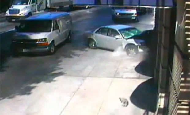 Um pedestre escapou por pouco de ser atropelado por um motorista em Los Angeles, nos EUA. O motorista perdeu o controle do veículo e bateu contra a parede. A cena foi flagrada por câmeras de segurança. Tanto o motorista quanto o passageiro que estava no carro escaparam ilesos do acidente. O líquido que escorre após a batida não é sangue, segundo o site britânico "News Lite".