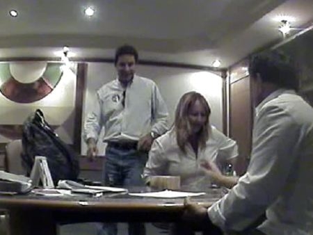 Reprodução do vídeo mostra Durval Barbosa (de costas) entregando maço de dinheiro à deputada federal Jaqueline Roriz e seu marido, Manoel Neto