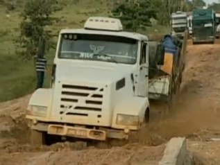 Dois dias de chuva forte e as estradas ficam intransitáveis. Quem se arrisca, fica preso nos atoleiros, ou pior. "Prejuízo grande, pneu da frente do caminhão. O prejuízo já está nuns R$ 2 mil".