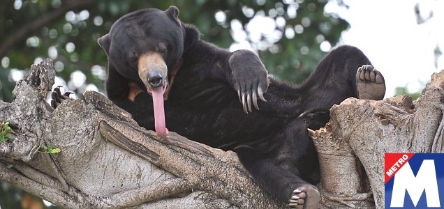 Kala é uma ursa-malaia e tem 19 anos de idade e, como todos os ursos de sua espécie, ela tem uma baita de uma linguona.