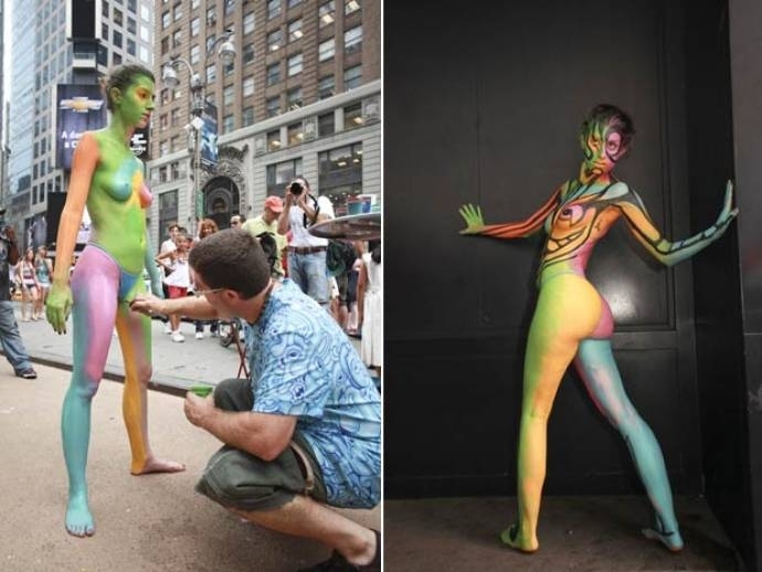 Especialista em pintura corporal, o artista Andy Golub, de 45 anos, foi preso na terça-feira (9) em Nova York, nos EUA, depois de fazer a aplicação de pinturas em uma modelo na Times Square.