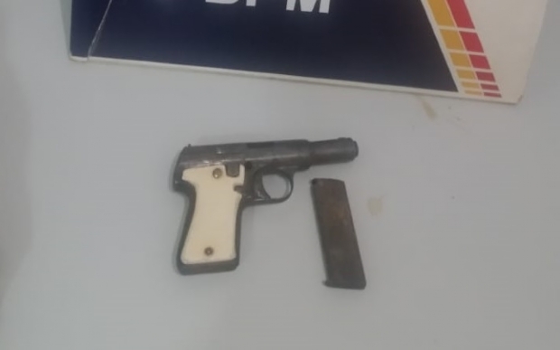 Os policiais suspeitaram da atitude e foram até a casa do menor, que tentou se esconder em um dos quartos. Quando a PM deu ordem para que ele saísse, deixou o cômodo com arma em punho apontada para os servidores.