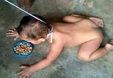 Internacional Tratado como cão: Mãe é presa após postar fotos de filho preso a coleira e comendo ração