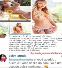 As polêmicas com a modelo Geisy Arruda não param de acontecer. Depois de chamar a atenção da mídia com as declarações sobre sexo durante ensiao sensual, agora a loira foi noticiada por conta de um atrito com “fã“ que a criticou nas redes sociais.