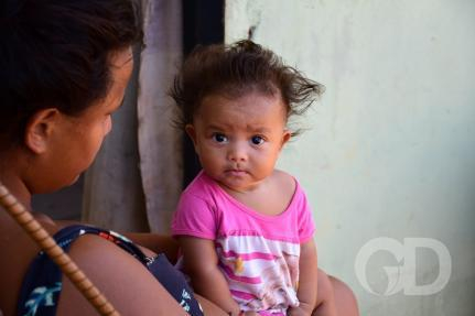 O casal relata que quando o leite não é suficiente, tenta introduzir caldo de feijão. “Quero muito oferecer uma fruta, mas não conseguimos comprar esse tipo de alimento”. No armário da cozinha, o casal mostrou o que tinha. Havia apenas arroz, sal e um resto de açúcar.