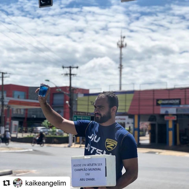 Atleta de jiu-jitsu vende água no semáforo para ir à competição nos Emirados Árabes