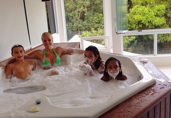 Carla Perez toma banho de espuma com os filhos e Xandy mostra a farra