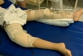 Atropelada por lancha em SC não sabe que pode ter perna amputada, diz pai