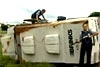 O carro-forte de uma transportadora de valores bateu na grade de proteção e capotou duas vezes na altura do km 311, no sentido Jardinópolis, da Rodovia Anhanguera, em Ribeirão Preto, no interior de São Paulo, na tarde de terça-feira (8). Ninguém ficou ferido.
