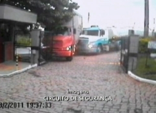 Uma funcionária de uma empresa de Sorocaba, a 99 km de São Paulo escapou por pouco do acidente que destruiu a guarita do local. Dois caminhões bateram na sexta-feira (18), mas o vídeo da batida foi divulgado apenas nesta quinta-feira (24).