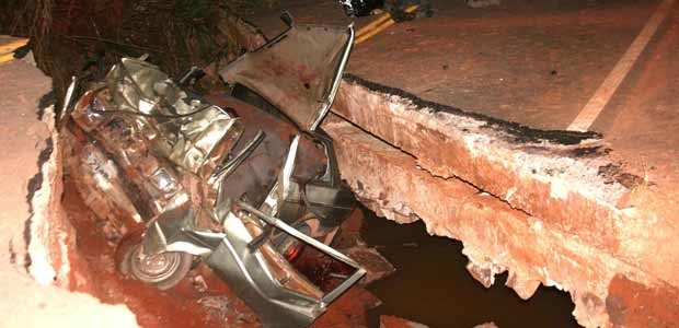 Motorista não percebe falta de ponte, carro cai e seis pessoas morrem
