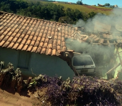 Cinco pessoas ficaram feridas após um carro cair no telhado e invadir uma casa em Poço Fundo (MG). Segundo a Polícia Militar, três vítimas estavam no veículo e outras duas dentro da residência.