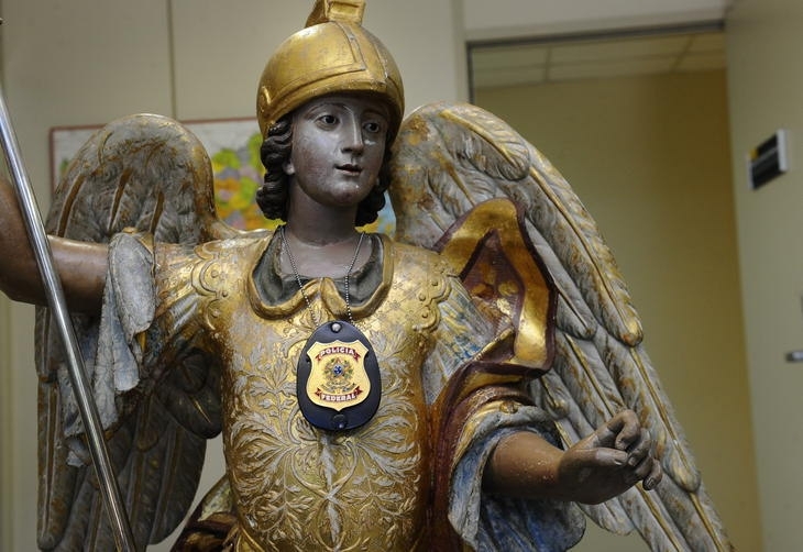 Passados 32 anos, a imagem de São Miguel Arcanjo está de volta a Santa Catarina, mas ainda vai levar pelo menos dois meses para retornar a Biguaçu, onde foi furtada da paróquia de Balneário São Miguel. Por enquanto, ela ficará na sede da Polícia Federal (PF), em Florianópolis.