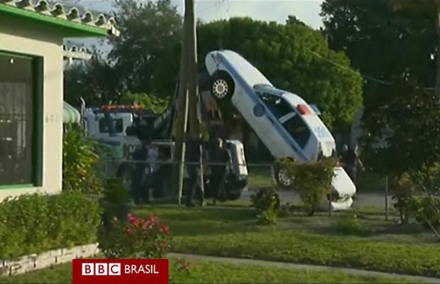 Viatura policial fica presa a poste na Flórida