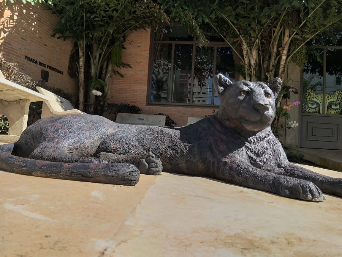 Onça negra esculpida por Francisco Charneca vira atração em rua de Cuiabá