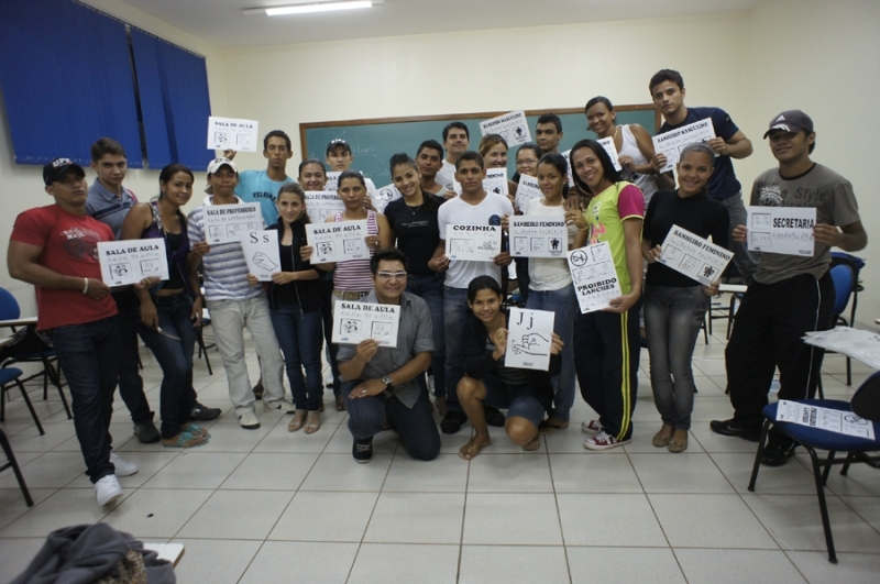 O segundo semestre do curso de Educação Física da Faculdade de Ciências Sociais e Aplicadas de Diamantino (UNED) desenvolveram uma oficina idealizada pelo professor Mario Roney, especialista na Língua Brasileira de Sinais (Libras). O professor e os acadêmicos sinalizaram todas as dependências da instituição de ensino.