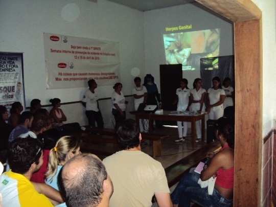 Acadêmicos do 5º Semestre do Curso de Enfermagem da Faculdade de Ciência Sociais e Aplicadas de Diamantino (UNED), proferiram palestra sobre Doenças Sexualmente Transmissíveis (DSTs) na Mabela Seara, em Diamantino, no ultimo dia 13 de Abril. O evento fez parte do 1º SIPATR - Semana Internacional de Prevençao de Acidente no Trabalho Rural, realizada de 12 a 16 de Abril.